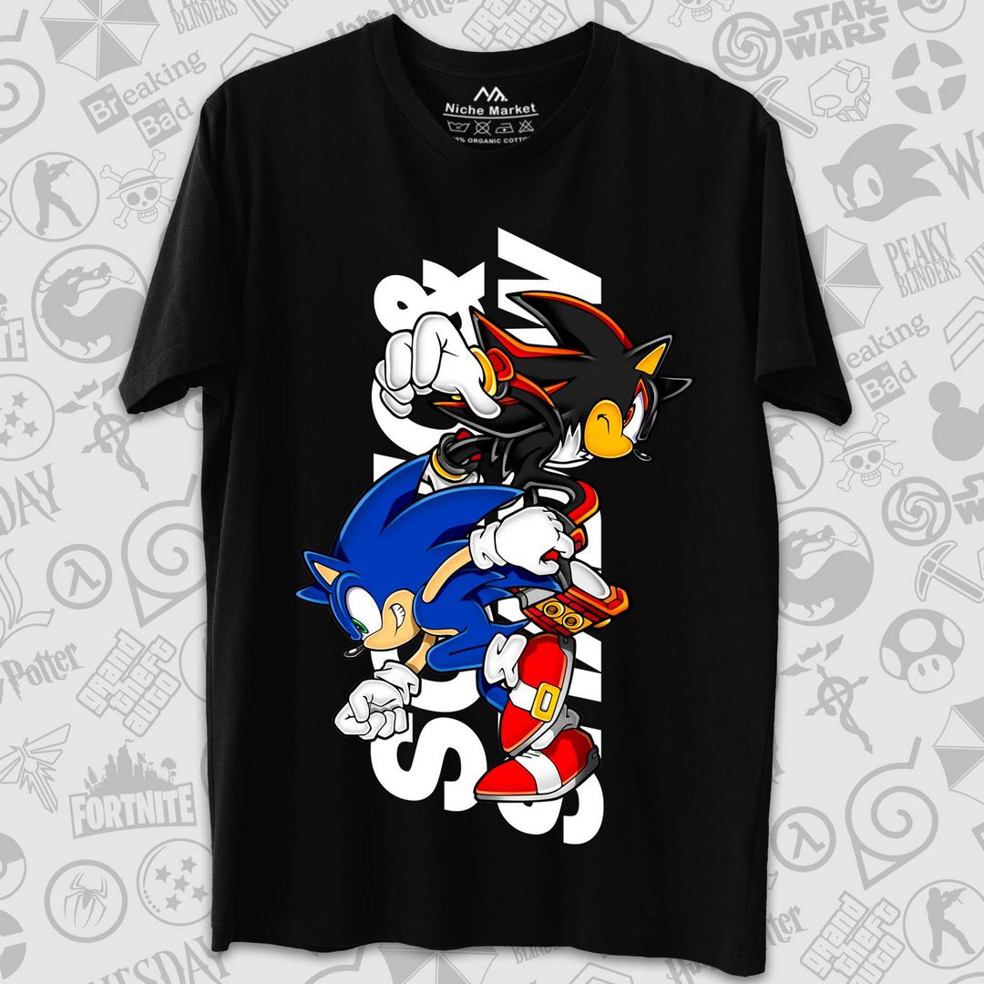 تیشرت Sonic طرح Sonic and Shadow One Colored Horizontal